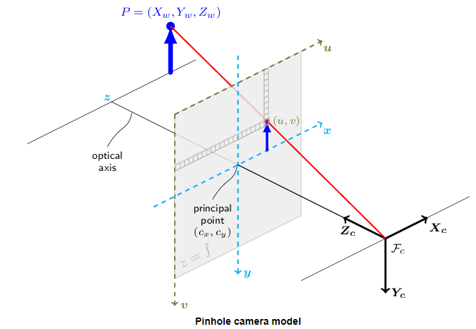 아래의 그림은 핀홀 카메라 모델을 나타냅니다.